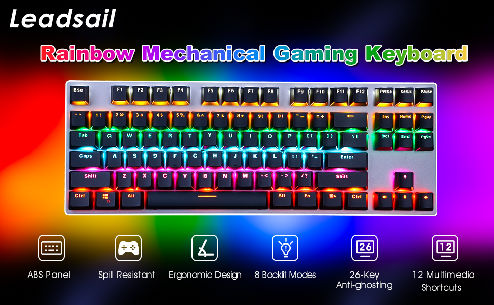 Amazon Com Leadsail Gaming Keyboard Compact Tenkeyless Mechanical Keyboard Rgb Rainbow Led Backlit Floating Keyboard With Blue Switch 87 Keys Anti Ghosting Ergonomic Water Resistant For Windows Pc Mac Gaming Video Games